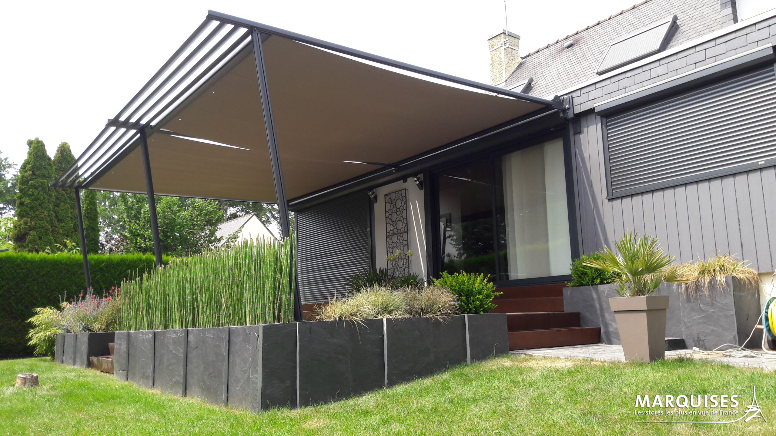 Transformez votre terrasse en espace de vie chaleureux et confortable avec, au choix, des pergolas bioclimatiques à lames orientables, des auvents en polycarbonate, des stores bannes,…